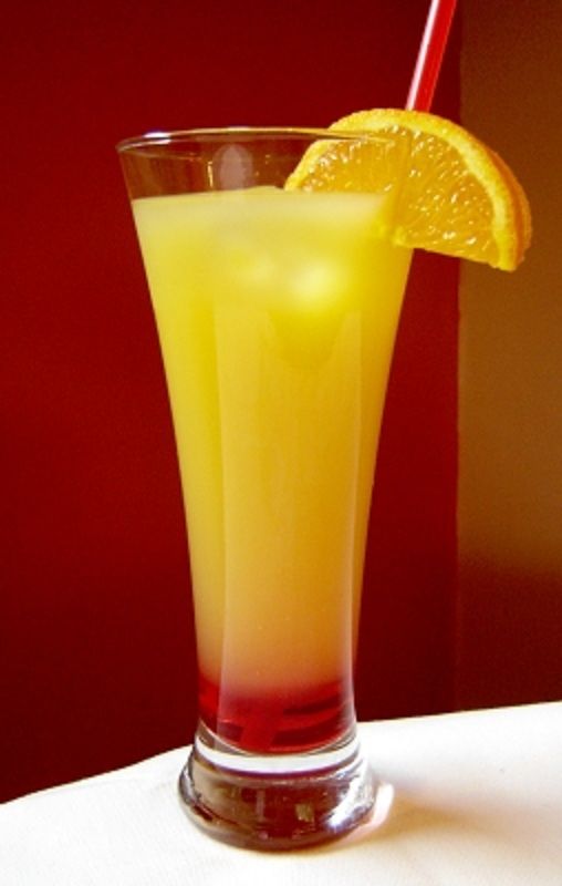 Sklenici naplníme ledem a nalijeme vychlazený gin. Dolijeme džusem. Na závěr přidáme grenadinu a ozdobíme plátkem pomeranče.