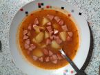 Na sádle si orestujeme nakrájenou cibuli a prolisovaný česnek, přidáme kmín, sladkou papriku, guláš.koření, chvilku orestujeme a zalijeme vodou. Přidáme nakrájené brambory, sůl, pepř, majoránku a párek. Až už jsou brambory skoro měkké, tak si gulášek zahustíme moukou s vodou, povaříme ještě 10minut.