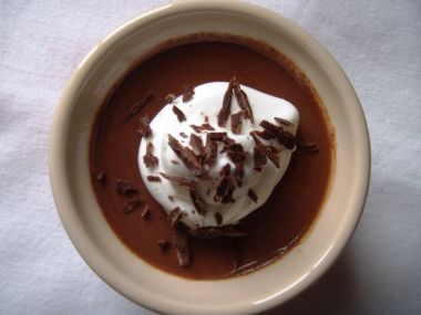 Čokoládu rozlámeme na malé kousky, přidáme mléko a na mírném ohni necháme změknout. Ke změklé a vychladlé čokoládě přidáme utřené žloutky s cukrem a vše dobře ušleháme. Potom zlehka vmícháme ušlehanou šlehačku a dáme na led. Podáváme s piškoty.