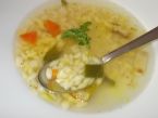 Mrkve oloupeme a pokrájíme na malé kousky, omytý pórek pokrájíme na kolečka. Morkovou kost omyjeme a dáme vařit do osolené vody. Po chvíli přidáme povařit uvedenou zeleninu. Vaříme, dokdu není zelenina měkká. V jiné nádobě si uvaříme těstovinovou rýži/ Risini- originál Italiano/ podle návodu, kterou po uvaření propláchneme vodou jako klasické těstoviny. Morkovou kost odstraníme.Přidáme do polévky a okořeníme solí, pepřem podle potřeby a kořením zdobíme petrželkou.