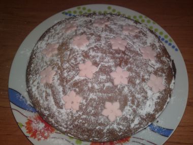 Všechno smícháme dohromady a pečeme při 180 stupních 30-45 minut podle velikosti a tvaru formy. Hotový rozřízneme a natřeme výraznou marmeládou. Vršek pocukrujeme a můžeme ozdobit marcipánovými kytičkami (rychlý je marshcipán v mých receptech dá se udělat i velmi malé množství hmoty).
