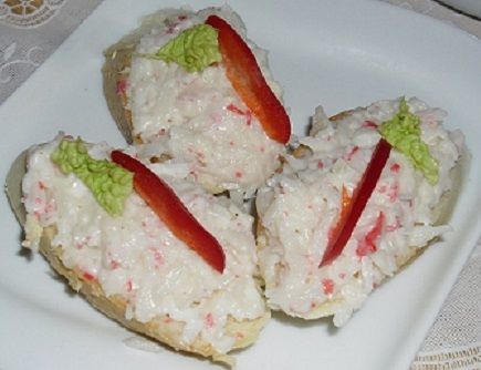 Po rozmrznutí krabích tyčinek je nakrájíme nadrobno a dáme do mísy. Přidáme bílý jogurt, sůl a majonézu. Pečlivě promícháme a necháme odležet v chladnu. Poté přidáme pepř a trochu citronové šťávy. Dobrou chuť :)